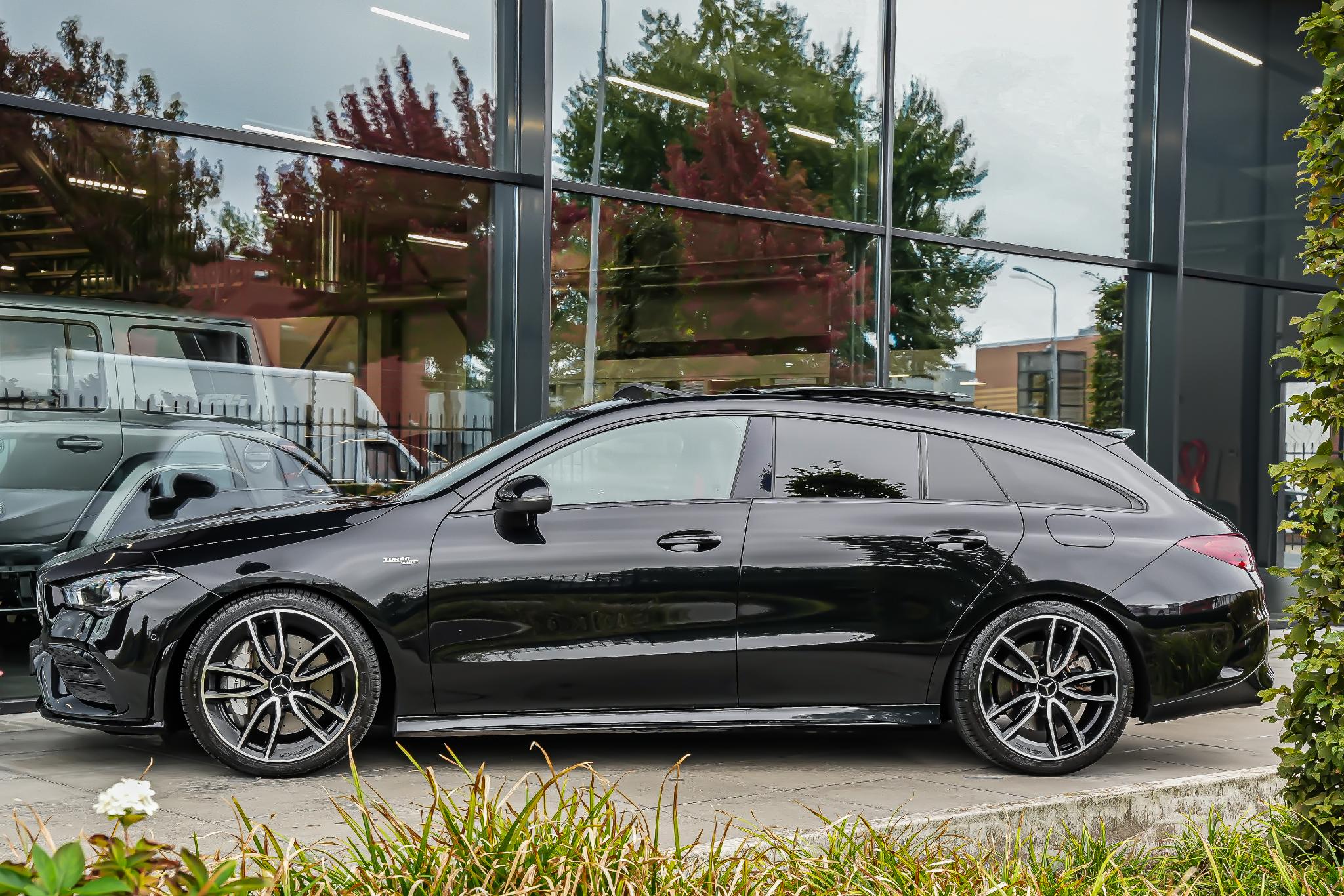 Deze Mercedes-Benz CLA 35 AMG combineert sportiviteit, luxe en technologie in één dynamisch pakket. Uitgevoerd met het gewilde AMG Line exterieur straalt hij pure sportiviteit uit dankzij de AMG-styling met voorspoiler en sideskirts, de verbrede wielkasten en de fraaie 19 inch AMG dubbelspaaks velgen. Het Night pakket geeft de auto extra karakter met hoogglans zwarte details die perfect contrasteren met de elegante Cosmoszwart metallic lak.